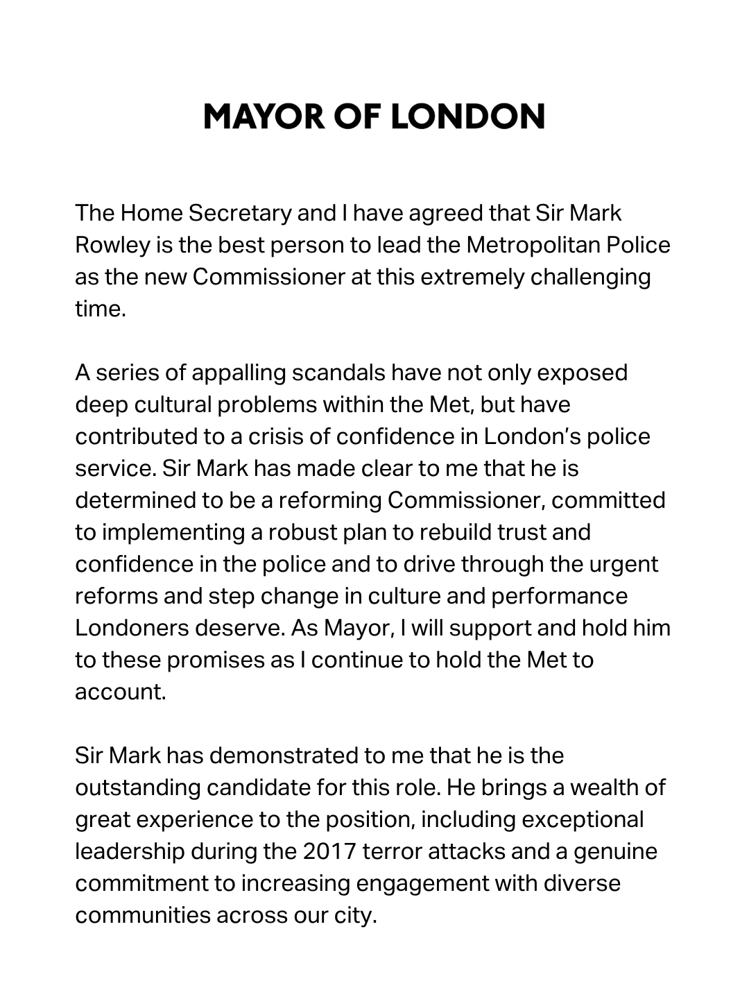 The former head of UK counter-terrorism policing is. Sir Mark Rowley has been appointed as the new commissioner of the Metropolitan Police the Home Office has announced. He faces the challenge of turning around a police force which has become mired in crisis former counter terrorism chief Sir Mark Rowley is to.